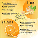 - SKINSCIENCE: Ginger +Turmeric can help you improve skin texture and glow, also slowing down the effects of aging on the skin, & the skin's elasticity. Turmeric and Vitamin C potent anti-aging properties increase the skin's ability to produce elastin, which gives your skin structure and keeps it rejuvenated and nourishes. It fights signs of aging like dark circles, dry or textured skin, dullness, and even tone. It boosts collagen production.