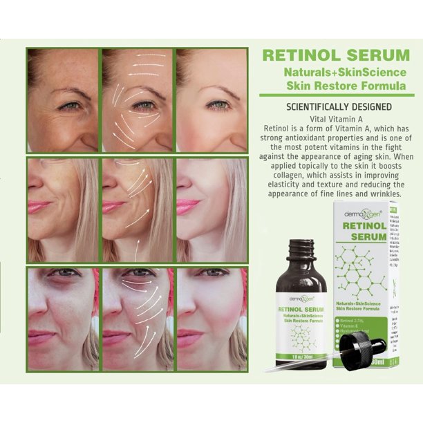 Dermaxgen Retinol serum improves fine wrinkles, restores natural aging's elasticity, flexibility, and repairs skin cells to promote collagen stimulation. Dermaxgen's retinol serum visibly minimizes wrinkles, age spots, and suns...