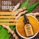 - BLEND OF TURMERIC: Organic Cold Presses Oil minimizes expression lines and wrinkles, age spots, sagging skin, and collagen loss and controls premature aging process. With daily use of turmeric oil gives radiant glow to your skin. You will notice deeply hydrated and moisturized skin in 2 weeks. A youthful complexion by restoring moisture balance to reveal younger, supple skin.
