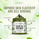 Green Tea Mud Mask - Matcha Powder, Aloe Vera, Kaolin and Bentonite Clay for Hydrating / Detoxifying / Deep Cleansing / Minimize Pores / Healing, Relaxing and Anti-wrinkle Organic Facial Mask